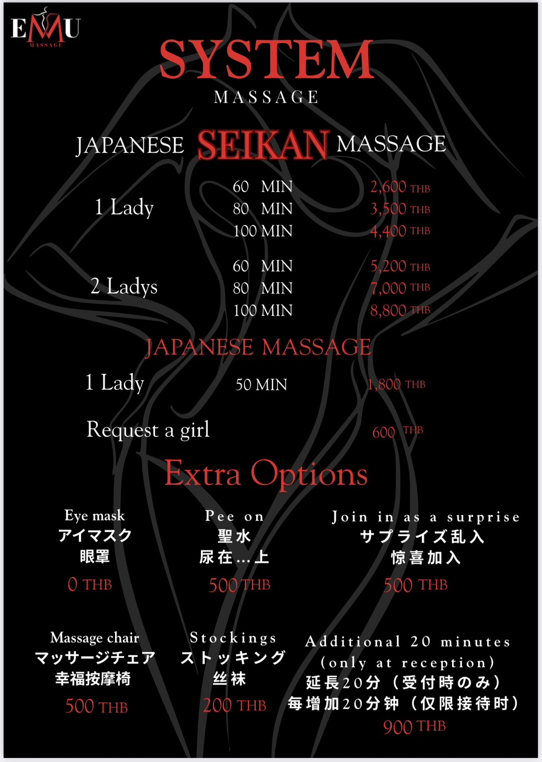 【EMUmassage】は、日本No.1人気M性感嬢の完全監修によって生まれた、バンコクで唯一の本格M性感専門店です。